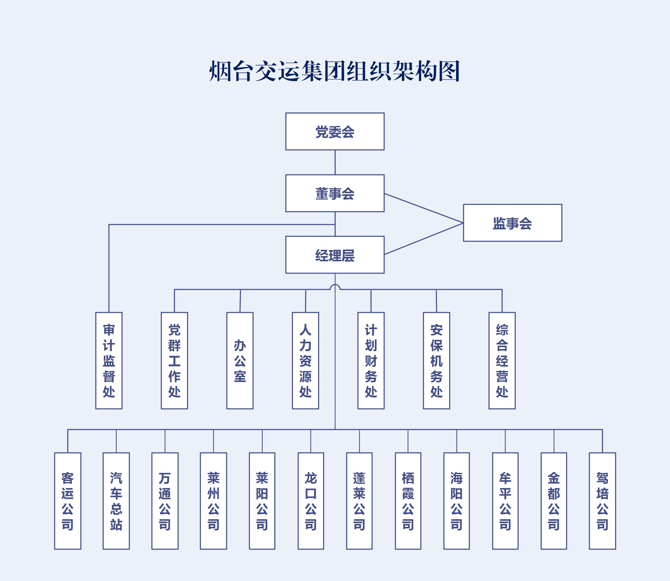 煙臺交運集團組織結構模式是以直線職能制為主的經營管理組織結構。集團總部設